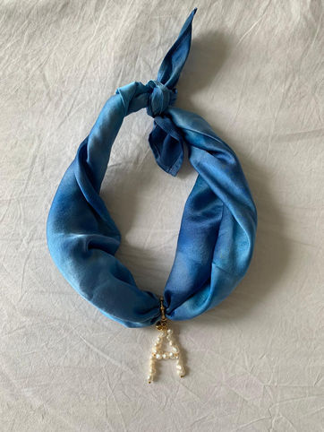 Hand painted silk scarf and hand made charm.Machine sewn scarf. It may not be a perfect square but you can still wear it in different ways.100% made in Paris.Total length: 74 cm.